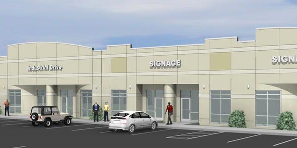 Building rendering of a 20,000-square-foot office and warehouse building that is under construction in Zebulon as part of the expanded Triangle East Business Park.